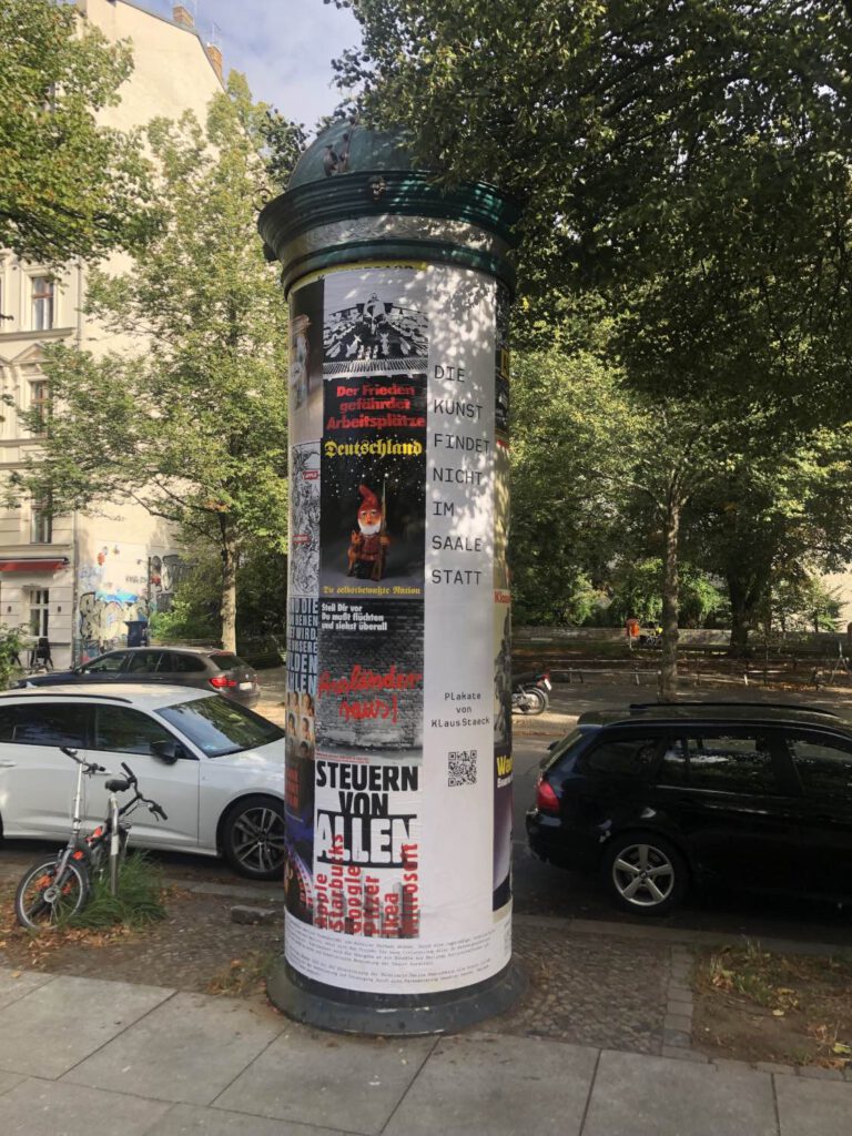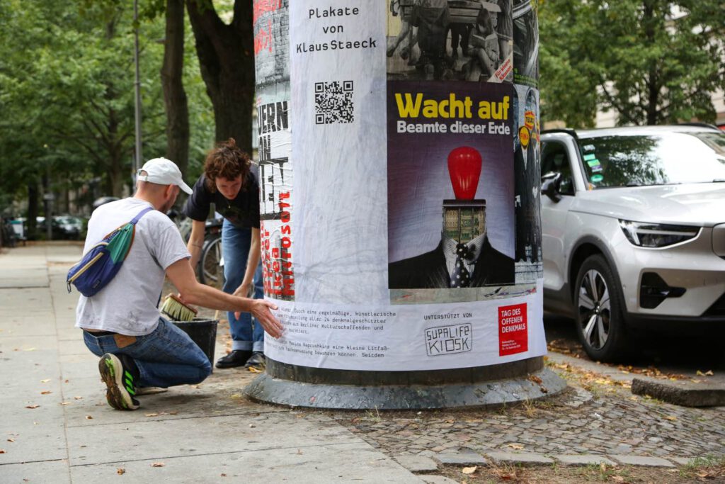Zum Tag des Offenen Denkmals am 14. September 2025 wurde von Michael Wismar, Initiator des Projektes LITFASS GOES URBAN ART, eine historische Litfaßsäule am Berliner Kollwitzplatz mit Staeck-Plakaten beklebt. Zufallsgast war Wolfgang Thierse.