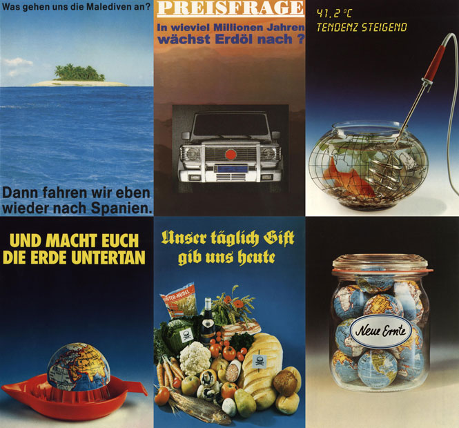 Die Zusammenarbeit mit Greenpeace in Sachen Klimaschutz-Plakate gehört zu den ganz wenigen Ausnahmen von der Regel, keine Auftragsarbeiten zu übernehmen. Im August 1988 hatte ich in eigener Regie mit dem Motiv »HOCH HÖHER HOECHST« zum ersten Mal die Hoechst AG angegriffen. Zusammen mit der Kali-Chemie in Hannover war sie zu diesem Zeitpunkt führend in der Herstellung der vollhalogenierten Fluorchlorkohlenwasserstoffe (FCKW), die die lebensnotwendige Ozonschicht schädigen. Auf meine Kosten hatte ich die Plakate an 400 Frankfurter Litfaßsäulen und an 424 Bahnhofswerbeflächen kleben lassen. Parallel wurde das Plakat in Göttingen angeschlagen, wo zur gleichen Zeit ein internationales Ozon-Symposium stattfand. Das Hessische Fernsehen wagte nicht, das Plakat im Bild zu zeigen, aus Sorge, schadenersatzpflichtig zu werden. Die Hoechst AG beließ es jedoch beim schriftlichen Protest in Form einer lauen Presseerklärung. Kern des Textes: Das Problem der Spraydosen sei »längst umfassend gelöst«. Einen Prozess vermied man aus naheliegenden Gründen, obwohl der stellvertretende Pressesprecher die Plakataussage für »eine infame Unterstellung« hielt.